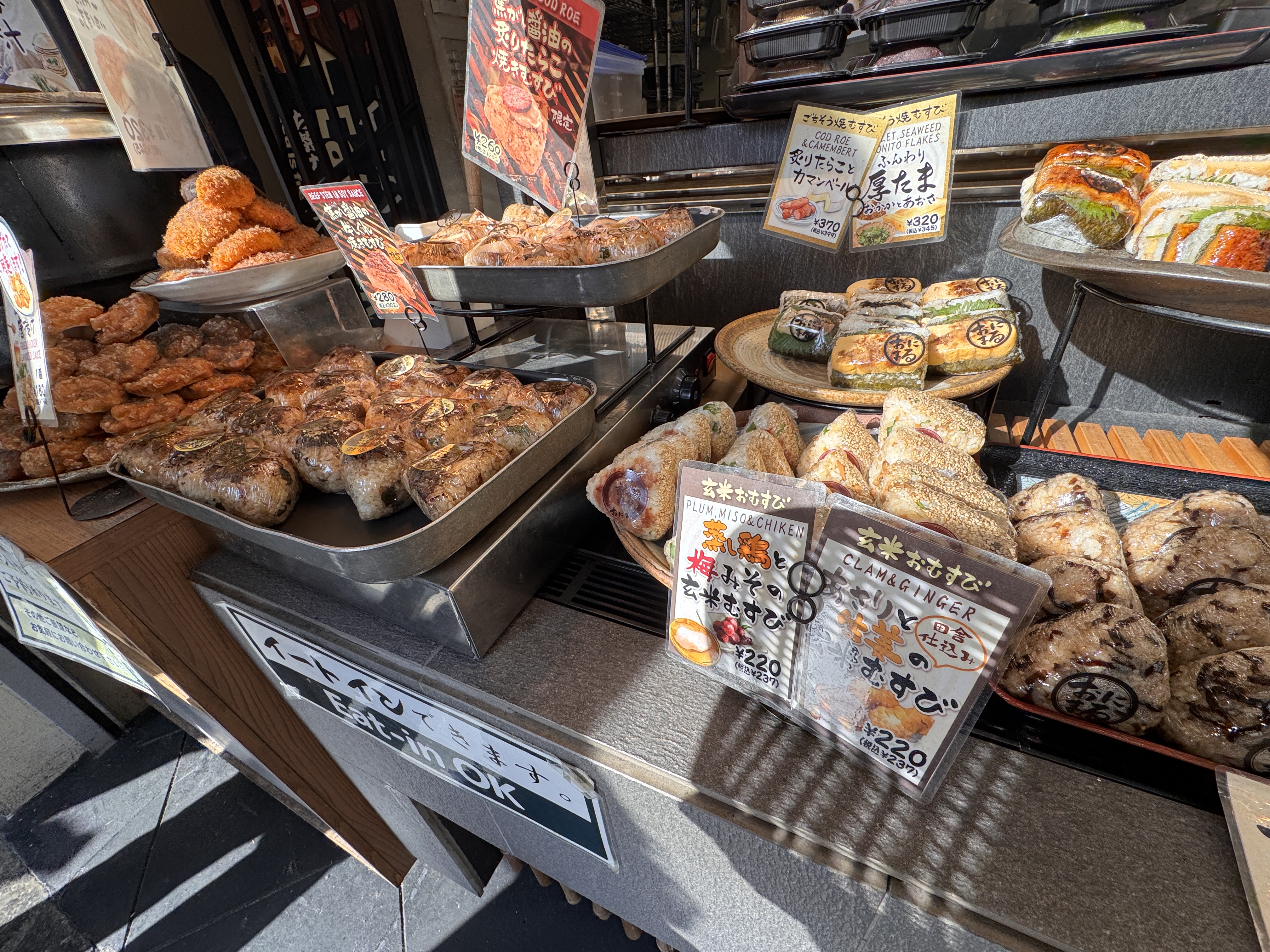 가장 먼저 추천드리는 메뉴는 부동의 인기 1위, '타마고 포크(계란 삼겹살) 오니기리'입니다. 두툼하고 달콤한 일본식 계란말이와 짭조름한 구운 스팸 스타일의 돼지고기가 통째로 올라가 있어 한 끼 식사로도 손색이 없습니다. 가격은 세금 포함 약 399엔 수준으로, 압도적인 비주얼만큼이나 만족스러운 맛을 보장합니다. 특히 아이들과 함께하는 가족 여행객들에게 가장 선호도가 높은 메뉴이기도 합니다.