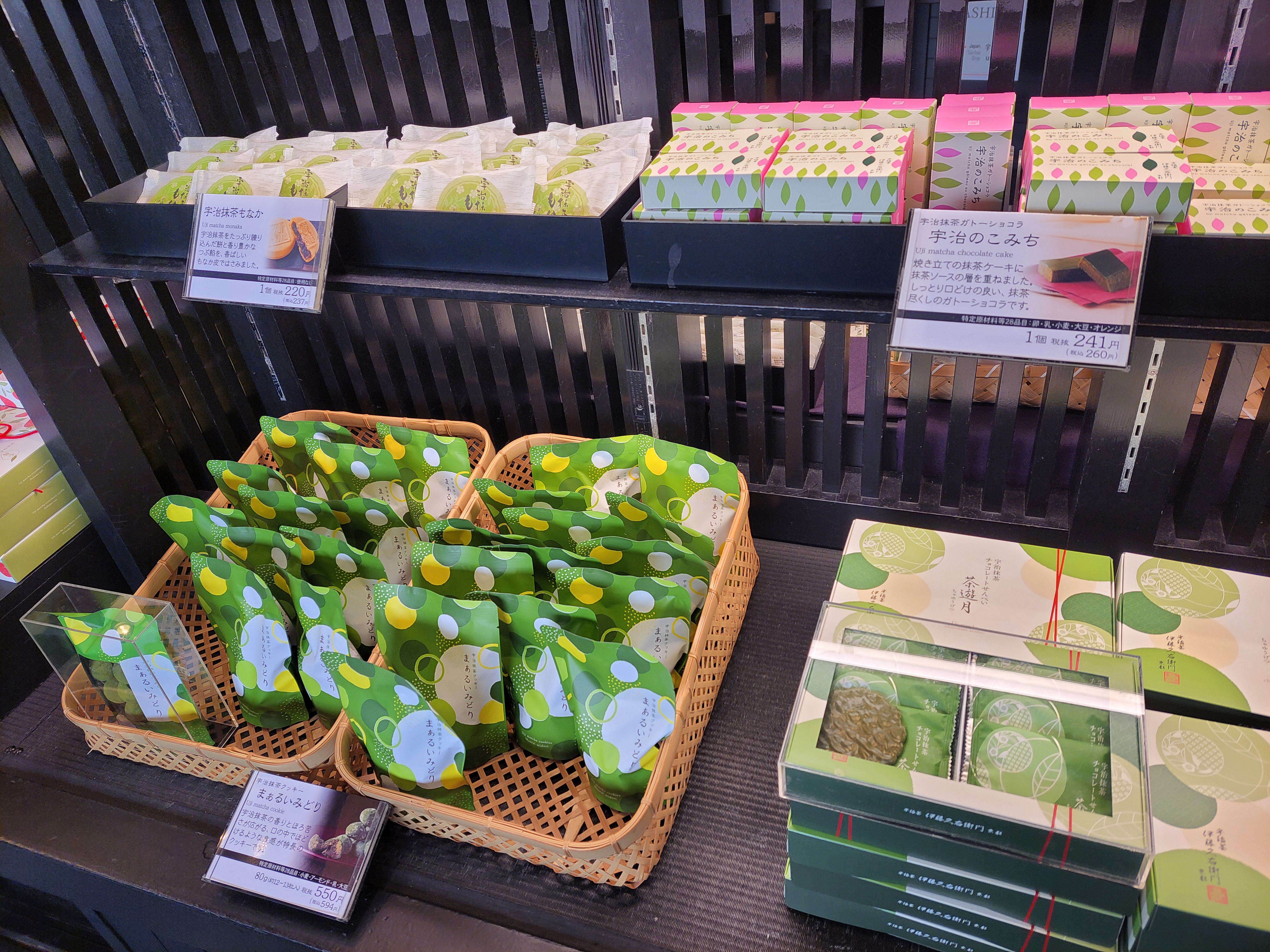 가장 먼저 추천하는 품목은 말차 다이후쿠(찹쌀떡)입니다. 얇고 쫀득한 떡 속에 진한 말차 크림이 가득 들어있어 한 입 베어 물면 우지의 향기가 입안 가득 퍼집니다. 6개입 세트 기준으로 약 1,800엔 내외이며, 냉장 보관 상품이므로 여행 마지막 날 구매하시거나 숙소에서 바로 드시는 것이 좋습니다. 선물용으로 보관 기간이 넉넉한 것을 찾으신다면 '말차 가토 쇼콜라'나 '말차 샌드 쿠키'가 훌륭한 대안입니다.