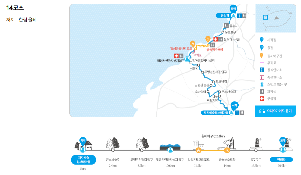 | 구분 | 14코스 (저지~한림) | 14-1코스 (곶자왈 올레) |